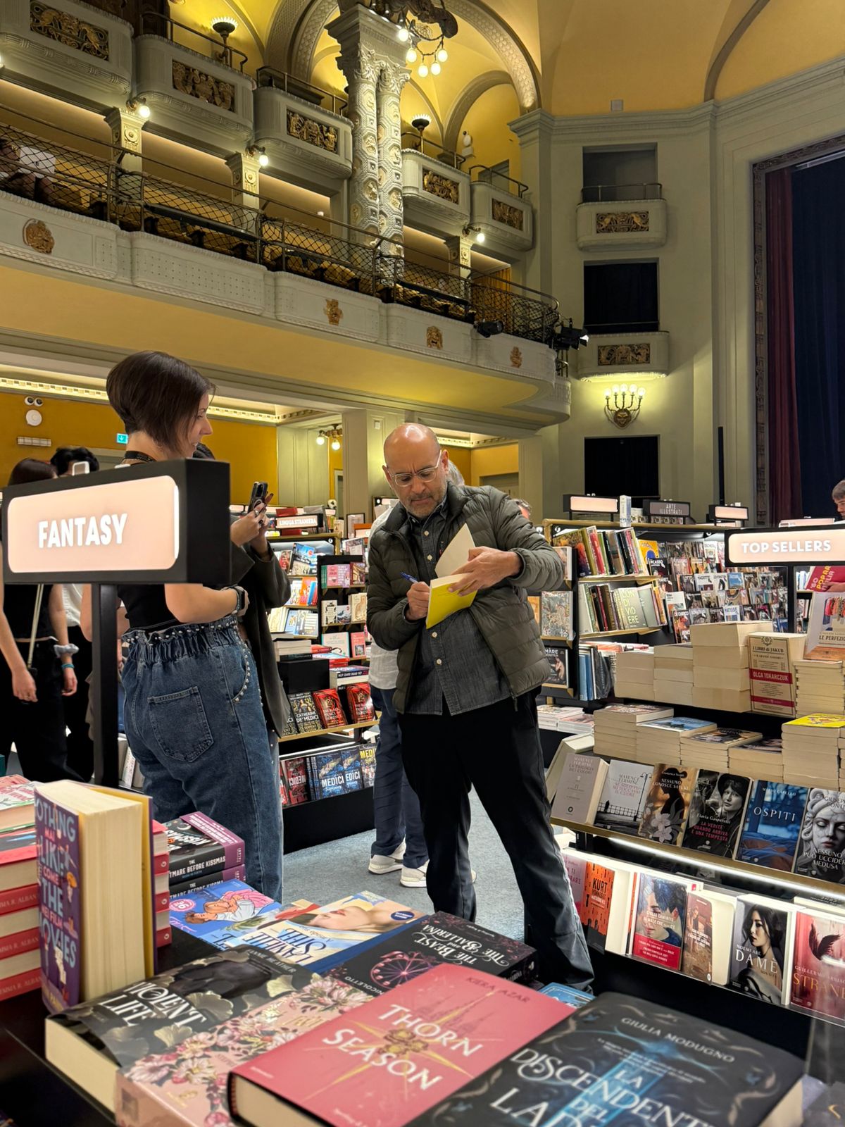 In the photos above, Gustavo Rodríguez visited the stunning Giunti Odean bookstore in Florence, Italy, where he found a tall stack of the Italian translation of Cien cuyes on the "Topsellers" table! He signed some stock to the delight of booksellers, who were pleasantly surprised at his unexpected visit.