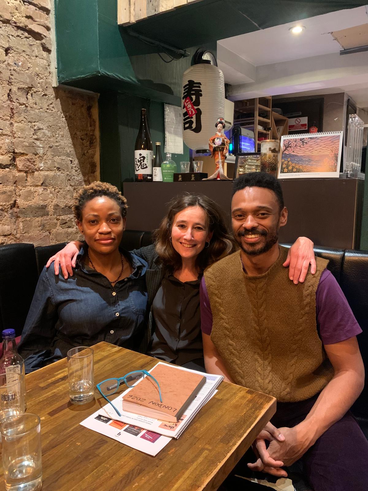 Anna also shared a wonderful evening with UK-based Musih Tedji Xaviere and Selali Fiamanya (pictured below left with Anna Soler-Pont), both working on their sophomore novels. Xaviere is the author of These Letters End in Tears, published by Catapult in the US and by Jacaranda in the UK and shortlisted for Book of the Year in the Discover category at the 2025 British Book Awards with translation rights sold into Danish, Dutch, Italian and Slovenian. These Letters End in Tears also won the Pontas & JJ Bola Emerging Writers Prize, for which Selali was selected as a finalist. He published his debut novel Before We Hit the Ground with Borough Press in February 2025. Mexican author Verónica Llaca (below right, with her husband) was also in London during the week of the book fair, attending an event at the National Liberal Club to speak about her novel Blood Ties, originally published in Spanish by Planeta México in 2021 under the title La herencia and translated into English with Mountain Leopard Press/Headline in 2024.
