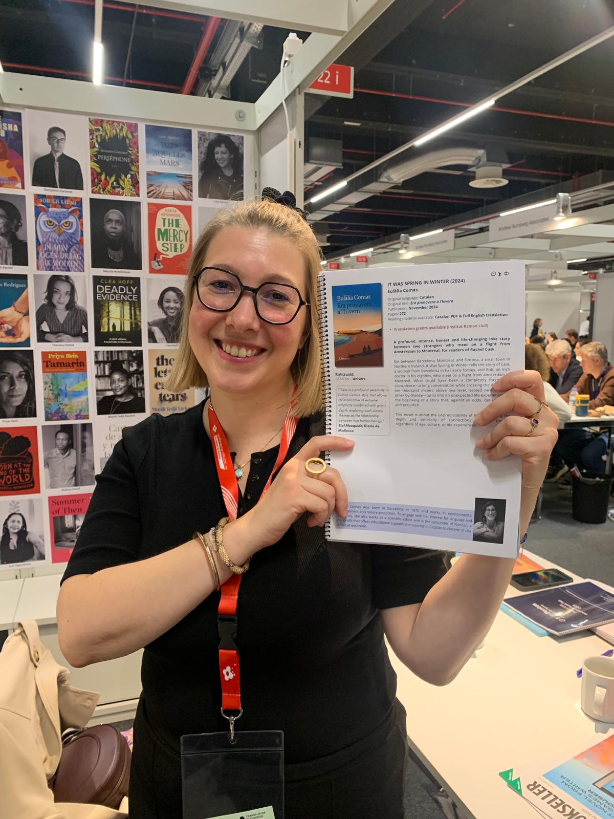 Despite packed schedules, Frankfurt is always the place for improvised meetings. We were delighted to see Ranya Bakr (above left, pictured with Carla Briner and Anna Soler-Pont) from Al Arabi Publishing in Egypt as she dropped off hot-off-the-press copies of the new Arabic translation of Stars In His Eyes (La força d’un destí) by Catalan author Martí Gironell. After winning the 2018 Ramon Llull Novel Award, the novel has also been translated into Spanish, English, Dutch, and Bulgarian. Apart from improvised meetings, we also love closing unexpected deals directly at our tables! Editorial director at Le soir venu/Éditions Jouvence Charlène Guinoiseau (above right) acquired French translation rights to It was Spring in Winter (Era primavera a l'hivern) by Catalan author Eulàlia Comas during a meeting at the fair, after falling in love with the novel. Le soir venu is also publishing another Pontas client in January 2026: The Prophecy Of The Birds (Le Présage des oiseaux), the brand-new novel by French author and translator Myriam Chirousse. All other translation rights and film/TV rights are currently available for both titles.